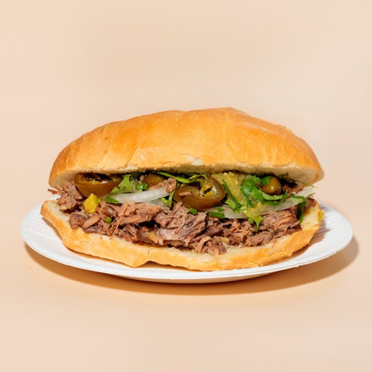ふんわりしたパンに肉・野菜・サルサを挟んだ、ボリューム満点のストリートフードで、朝食にもランチにもぴったりです。