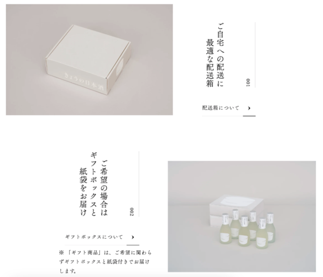 2月20日(月)からECサイトにて配送箱での販売がスタートします。今後は、通常商品については配送箱でのお届けがデフォルトとなり、有料オプションとしてギフトボックスを選べるようになります。(ギフトボックス価格:3本セット 400円、6本セット800円)ギフト商品は、従来通りギフトボックスでお届けします。
