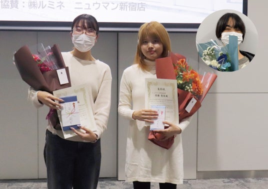 左:K-vision大賞 休場さん 右:NEWoMan新宿店賞 佐藤さん 枠内:ビジュアルデザイン賞 池田さん※当日ご欠席