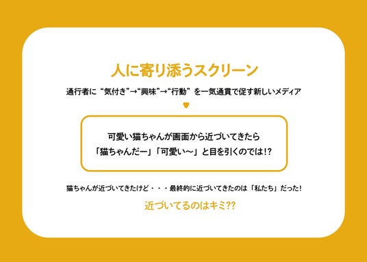 本当に放映されるが信じられないぐらいうれしいです。うちの猫が新宿デビューだと家族で喜びました。世の中の猫動画には顔が大きく近づいてくる動画があまりないなと思ったのと、あわただしく人々が行き交う新宿で、猫が近づいてきたら思わず人が足を止めるのではないかな?と考えて制作しました。
