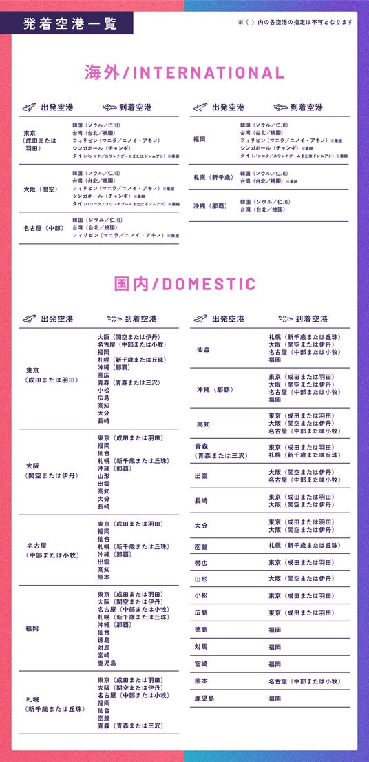 大人気の「空旅ガチャ」が大幅リニューアル。従来の国内路線に加え、ユーザーの皆様からご要望の多かった海外5エリアへの往復航空券(予約権利)がラインナップに加わります。「国内?海外?あなたはどっち!?」をテーマに、旅の可能性を広げます。人気の海外旅行先である韓国、台湾、タイ、シンガポール、フィリピンへの往復航空券(の予約権利)が当たるチャンスをご用意しました。