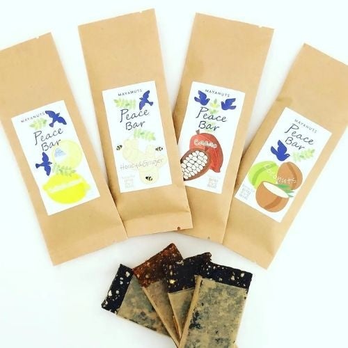 マヤナッツをベースに、オーガニックナッツやドライフルーツを組み合わせたエナジーバー。ハニージンジャー、チョコレートなど複数のフレーバーを展開。グルテンフリー、シュガーフリー(甘味はデーツとはちみつ)で、携帯食や非常食、アウトドアシーンでの栄養補給に最適です。賞味期限1年で、防災用品としても提案できます。