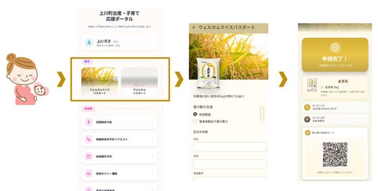 上川町出産子育て応援ポータル(※1)にて、妊産婦の健康増進および元気な赤ちゃんを産んでいただけるよう、令和8年1月以降に妊娠届を出された方を対象に、出産子育てウェルカムパスポート(※2)内において、妊娠期に申請1回につき5kgの金芽米を合計2回プレゼントします(年間約10名を想定)。