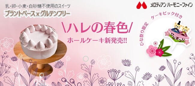 株式会社メロディアンハーモニーファイン(本社、大阪府八尾市、社長、小堀真美)は、グルテンフリー&プラントベース「春色のホールケーキ」を、2023年2月15日(水)から予約販売を開始しました。こちらの「春色のホールケーキ」は、昨年12月より販売を開始した、乳・卵・小麦・白砂糖を不使用の「米粉のホールケーキ」の姉妹品です。