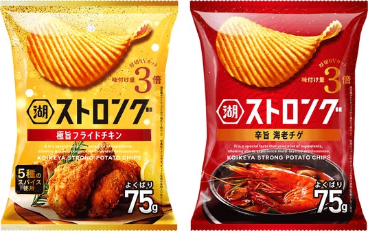 株式会社湖池屋(社長:佐藤章)は、香りから余韻まで楽しめる、濃厚で贅沢な味わいが特徴のポテトチップス「湖池屋ストロング」ブランドより、「湖池屋ストロング 極旨フライドチキン/辛旨 海老チゲ」を、2025年12月15日(月)に全国コンビニエンスストア限定で発売します。