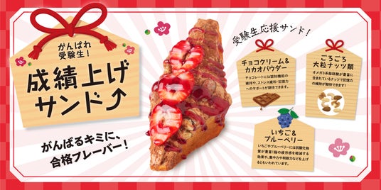 揚げサンド専門店「Age.3(アゲサン)」では、この受験シーズン、勉強に励むすべての学生の皆さまを応援するため、昨年大好評をいただいた限定商品『成績上げサンド』を今年も発売いたします。