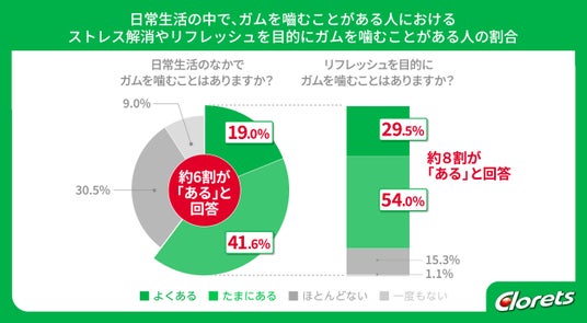 モンデリーズ・ジャパン株式会社(本社:東京都品川区 / 代表取締役社長:碇祐輔)は、息スッキリの「クロレッツ」ブランドにて、「ガムを噛む」ことと“リフレッシュ”や“気分転換”との関係性を明らかにすべく、「ガムとリフレッシュの関係に関する調査」を実施いたしました。