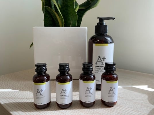 サンフランシスコ発祥のブランド「AGRARIA」のシャンプー、コンディショナー、ボディソープ、ボディローションをプレミアフロア限定で新たに採用しました。爽やかなレモンバーベナの香りが心地よいバスタイムを演出します。