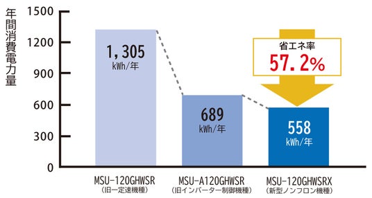 年間消費電力量削減(代表機種MSU-120GHWSRXの場合)