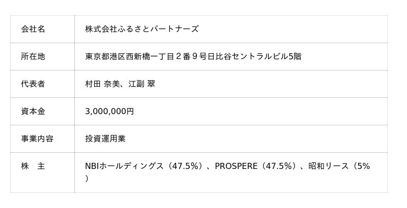 NBIホールディングスは、「地方社会の活性化を実現し、地方創生により未来の日本をもっと豊かにする」というビジョンのもと、2025年4月より全国の旅館・ホテル等への投資を開始し、これまでに約200億円の投資を行ってきました。また、PROSPERは、「日本を元気に!!」をコンセプトに掲げ、2023年5月に「PROSPER日本企業成長支援ファンド」を立ち上げ、これまでに全国の旅館・ホテル等を中心に11件の中小企業へ投資を行ってきました。「不動産を軸としたアプローチ」のNBIホールディングスに、「企業投資を軸としたアプローチ」をするPROSPERが加わることにより、両社の地方創生のコンセプトが融合し、更には両社のパイプラインが合わさることにより早期に資産規模が拡大し、地方活性化に資するREIT組成の蓋然性がより高まると考え、今回の「ふるさとパートナーズ」の設立に至りました。
