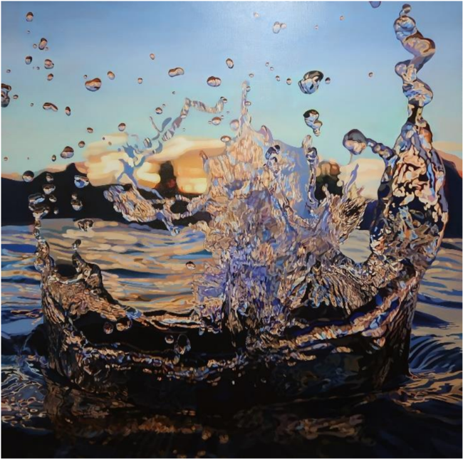 黄昏時の空はロマンチックで、一瞬の儚い水しぶきによって、情景をよりドラマチックに照らし出す。