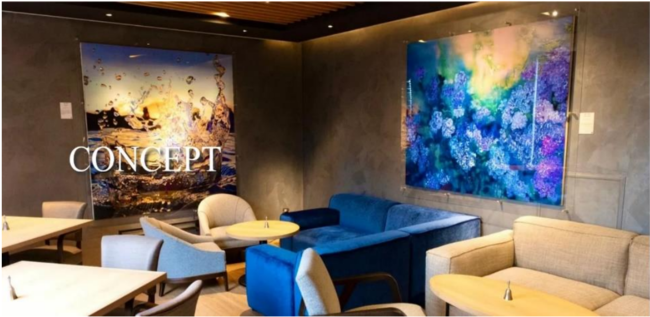店内は、お客様がアートにリアルで触れ合える空間になっており、気に入った作品があれば購入も可能です。ドリンクや料理はもちろん、様々なアート作品も五感で楽しんでいただけます。