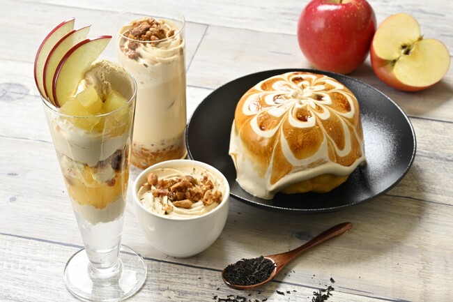 りんご栽培発祥の地と言われる、北海道七飯町(ななえちょう)産のりんごから作られたコンポートを使用したパンケーキやパフェのほか、ドリンクの中に北海道産のりんごが隠れているラテなど、さわやかで食感も楽しいスイーツを揃えました。