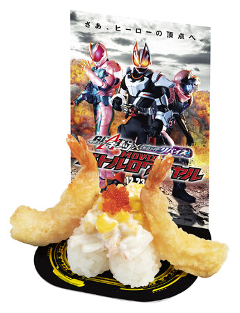 「仮面ライダー」は、50年以上幅広い世代に愛されている人気シリーズです。スシローは、「輝け、子どもたちの笑顔。」をテーマにし、これからの未来を担う子どもたちを応援しています。そんな中、子どもたちにおすしを楽しく、お腹一杯召し上がっていただきたいと考え、子どもたちを中心に人気がある「仮面ライダー」とのコラボレーションに至りました。「仮面ライダーギーツ×リバイス すし」は、店内でマヨネーズと和えるカニ風サラダ、店内で塩茹でしてから和えるコーン、プチプチ食感のとびこ(一部エリアではししゃもこ)に、揚げたてのえび天をドドンと盛り合わせました。お子さまに人気のネタを組み合わせており、えび天だけや、コーンなどと一緒に合わせたりと、仮面ライダーのように自分スタイルに“変身”させてお楽しみください。