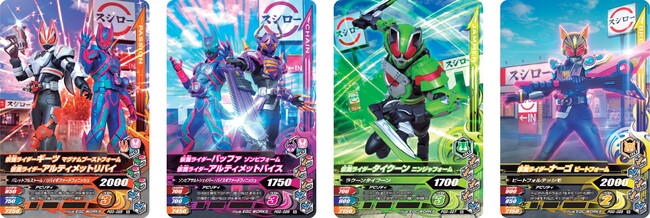 スシローオリジナルのガンバライジングカードは、全国の量販店、アミューズメントコーナーに設置されている「データカードダス 仮面ライダーバトル ガンバライジング」で遊べます。