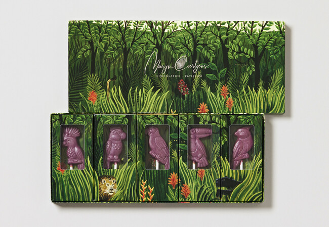 2023年はパッケージデザインもリニューアル。美しい鳥や動物、甘く美味しそうな果実など、魅惑的で人を惹き付けるジャングルを表現しました。