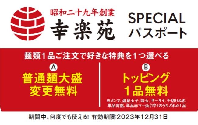 ●麺類を1品ご注文で、2つの特典の中から1つご利用いただけます