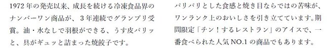 画も掲載し、店頭やパッケージだけでは伝えきれない商品の魅力を紹介します。