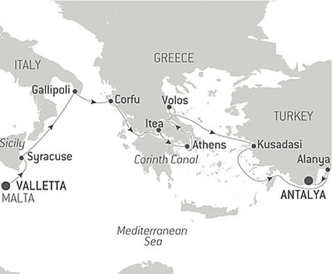 航路:バレッタ(マルタ共和国)発・アンタルヤ(トルコ)着