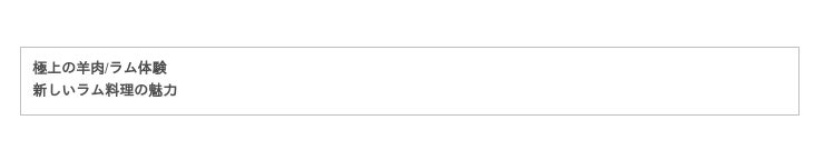 ※部位ごとのラム肉の美味しさを最大限に味わっていただく為、一部レアで提供する料理があります。