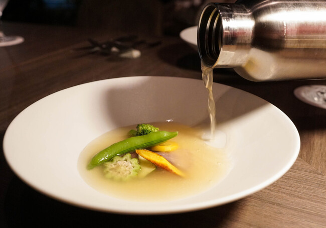 スープ:ラムボーンのスープ 旬菜と柴海農園野菜を添えて