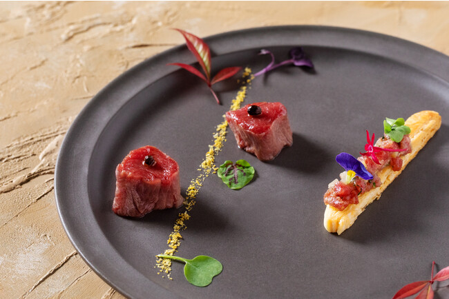 前 菜:フィレ肉のひとくちレアステーキとバターフォンセのタルタル