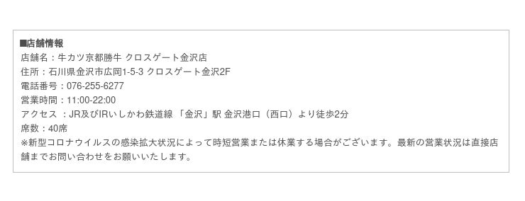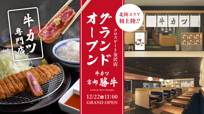 北陸エリア初にして石川県初出店となる「牛カツ京都勝牛 クロスゲート金沢店」は、JR金沢駅から徒歩2分の商業施設「クロスゲート金沢」の2Fにオープン致します。