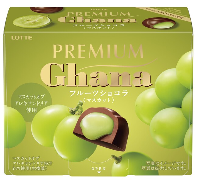 マスカットのみずみずしい果実感とガーナミルクの濃厚な味わいが広がる、上質なひと粒ショコラ。