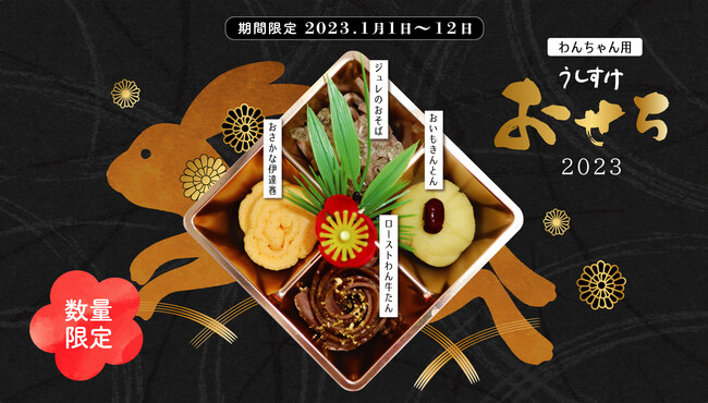 このたび、ペット同飯(TM)可焼肉店「うしすけ」などを東京・神奈川を中心に展開する株式会社With Pet Family(本社:東京都大田区、代表取締役:吉田 達也)は、2023年1月1日(日)から同月12日(木)までの期間限定で、当社運営店舗「うしすけ」にて、お正月限定わんちゃんごはん「うしすけおせち2023」を発売いたします。