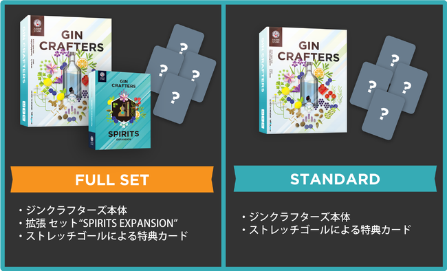 他にも、本プロジェクトでは『ジンクラフターズ』をさらに楽しめるよう、拡張パッケージ『SPIRITS EXPANSION』をご用意しました。ジンの蒸留機、ベーススピリッツ、ジンづくりを助けてくれるサポーターという3つの要素が加わります。