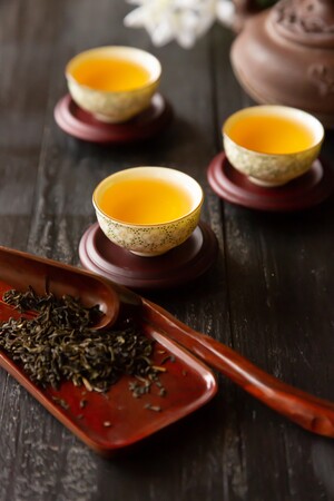 渋みのない黄金色のウーロン茶。高級品とされ、色や香りともに味わうことができます。