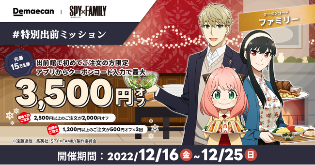 < 『出前館』×「SPY×FAMILY」 エントリー&注文キャンペーン >