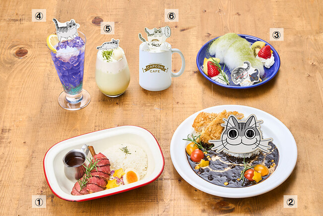 ※その他にも、「キュルガのフリフリ♪フライドチキン」(1,870円 税込)や、「キュルガのお顔ケーキプレート」(1,540円 税込)、「夜は猫とスイーツといっしょプレート」(1,540円 税込)などのメニューをご用意しております。メニューの詳細はカプコンカフェ 池袋店公式ページにてご確認ください。