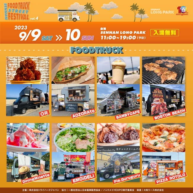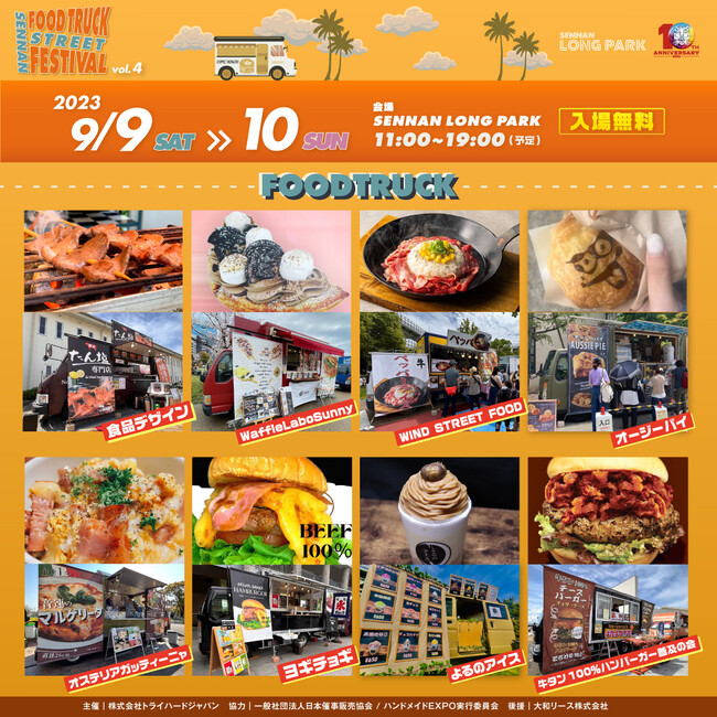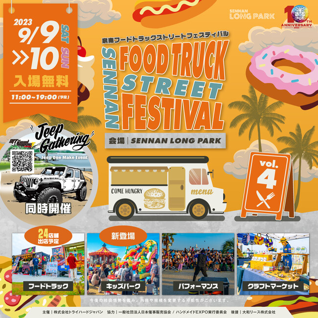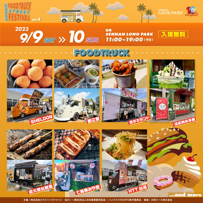 株式会社トライハードジャパン(所在地:大阪市中央区)は、2023年9月9日(土)、10日(日)に、SENNAN LONG PARKにて、グルメイベント「FOOD TRUCK STREET FESTIVAL vol.4」の開催を発表いたします。公式サイト ?https://www.tryhardjapanevent.com/food-truck-street-festival