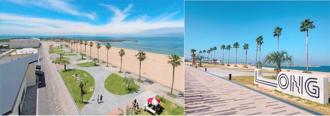 関西の玄関口である関西国際空港の対岸に位置する、関西最大級の交流・レクリエーションスポットです。高さ15.5mの高所アスレチックをはじめ、スケボーパーク・サッカーグラウンドなどのスポーツ施設を備えた『アクティビティエリア』や、ビーチをイメージしたBBQ場、テラス席の飲食店が並ぶ 『コミュニティエリア』、岡田浦漁港とのタイアップにより、泉州の自然の恵みをたくさん受けた、地元ならではの食材が楽しめる『マルシェエリア』、キーカラーが象徴的なヴィラが並び、キッチン、リビング、ジャグジー、BBQダイニングが用意されたお部屋でプライベートな時間を楽しめる『グランピングエリア』の4つのエリアに分かれており、一日を通してスポーツ・食・レジャーを丸ごとお楽しみいただけます。