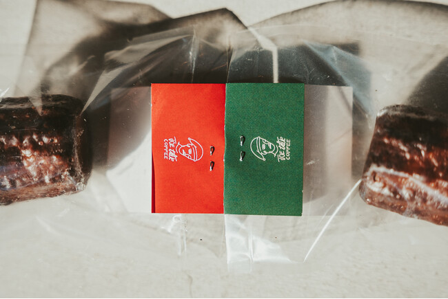 タグはレッドとグリーンの2色で、表には「Merry Christmas」の文字、裏にはサンタクロースの帽子を被ったJOE TALK COFFEEのロゴをプリントしています。裏面のロゴはイラストレーターのnorahi(ノラヒ)氏 ( https://www.instagram.com/norahi/ ) にデザインしていただきました。メッセージカードは裏面に自由にメッセージを記入できる仕様になっており、クリスマスシーズンのプレゼントとしてもおすすめです。