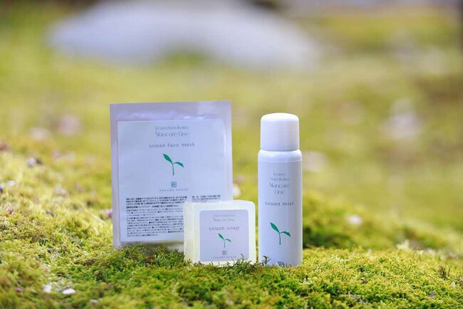 ・草菴オリジナルコスメ3点(温泉ミスト、石鹸、フェイスマスク)
