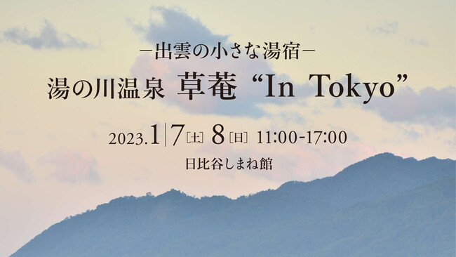 令和5年1月7日(土)~8日(日)に、日比谷しまね館で「-出雲の小さな湯宿- 湯の川温泉 草菴“In Tokyo”」を開催します。