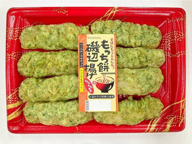 そして「磯辺揚げ」は2種ご用意。『もっち餅 磯辺揚げ』はレンジやトースターで温めると、よりもっちりとしたお餅のような食感が楽しめるのが特徴です。また、かね貞定番商品の『お馴染みの磯辺揚げ』は、年越しそばなどのトッピングに合うように従来より長い形状に作り変えてご用意いたしました。どちらも温かいおそばやうどんに添えてお召し上がりください。
