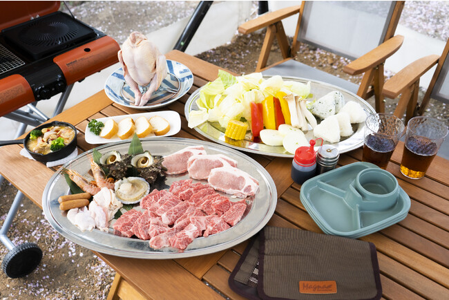 glampark 四季荘ならではのきめ細やかな霜降りでほのかな甘みが広がる島根牛と、山陰の荒波にもまれた活きのいいサザエなど島根県の地元食材をふんだんに使ったBBQコースがおススメ。
