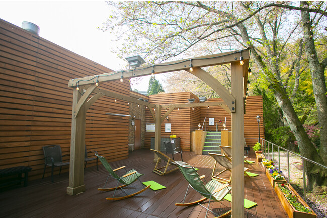 横並びで仕切り(セパレート)はついていないのが一般的なサウナですが、仕切りをつけることでより熱をため、究極のサウナ体験を演出します。サウナから出たらキンキンに冷えた水深160cmの水風呂に入り、外気浴で自然に囲まれた極上の「ととのい体験」ができます。