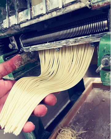 つけ麺の命である麺については毎日店舗で製麺することをこだわりとしています。