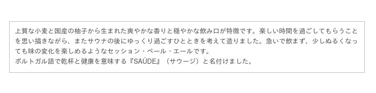 『BRUTUS』編集長の田島さんなど編集者さんと共に造られ、『SAÚDE』(サウージ)と名付けられたビールは