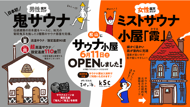 2022年6月には、愛媛の伝統工芸で鬼瓦で名高い「菊間瓦」の窯元とコラボし、“鬼”をコンセプトにした「鬼サウナ」や、北欧の建物をイメージしたミストサウナ小屋などをオープン。全国のサウナファンが“巡礼”に来ることから、一部メディアより「四国サウナの聖地」と評されています。