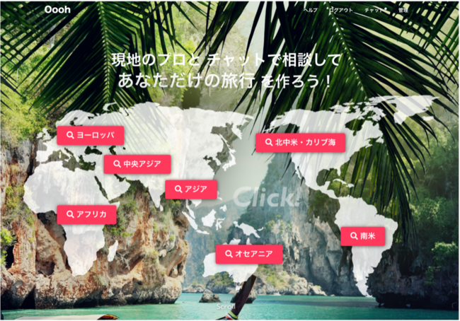 Oooh(オー)は、現地の旅行のプロ※と相談しながら、自分だけのオリジナルでオーダーメイドの海外旅行を作成・手配をできるチャットサービスです。チャットで相談ができることから、空き時間に場所を選ばず手軽に利用することができます。また、相談できるコンテンツも「現地ツアー、アクティビティー、送迎