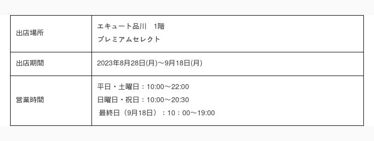 エキュート品川ポップアップショップ販売商品ラインナップ