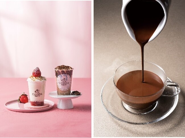 まるで、ケーキのようなデザートドリンク「GODIVAデザートドリンク ストロベリーショートケーキ」、「GODIVAデザートドリンク ガトーショコラ」の2種類と、口当たりの良い調和のとれた味わいをお楽しみいただける、豊かな香りとコクを感じられるチョコレートドリンク全6種類を販売します。