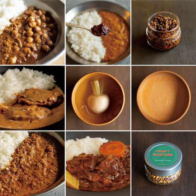 マスタードの豊かな酸味がお肉料理は勿論、ホットサンドなどの料理のレベルを引き上げます。そのまま食べても美味しく、お酒のアテとしてもおすすめ。オリジナルほかドライフルーツとスパイスの組み合わせが個性的なアクセントを与えるラインナップをご用意。