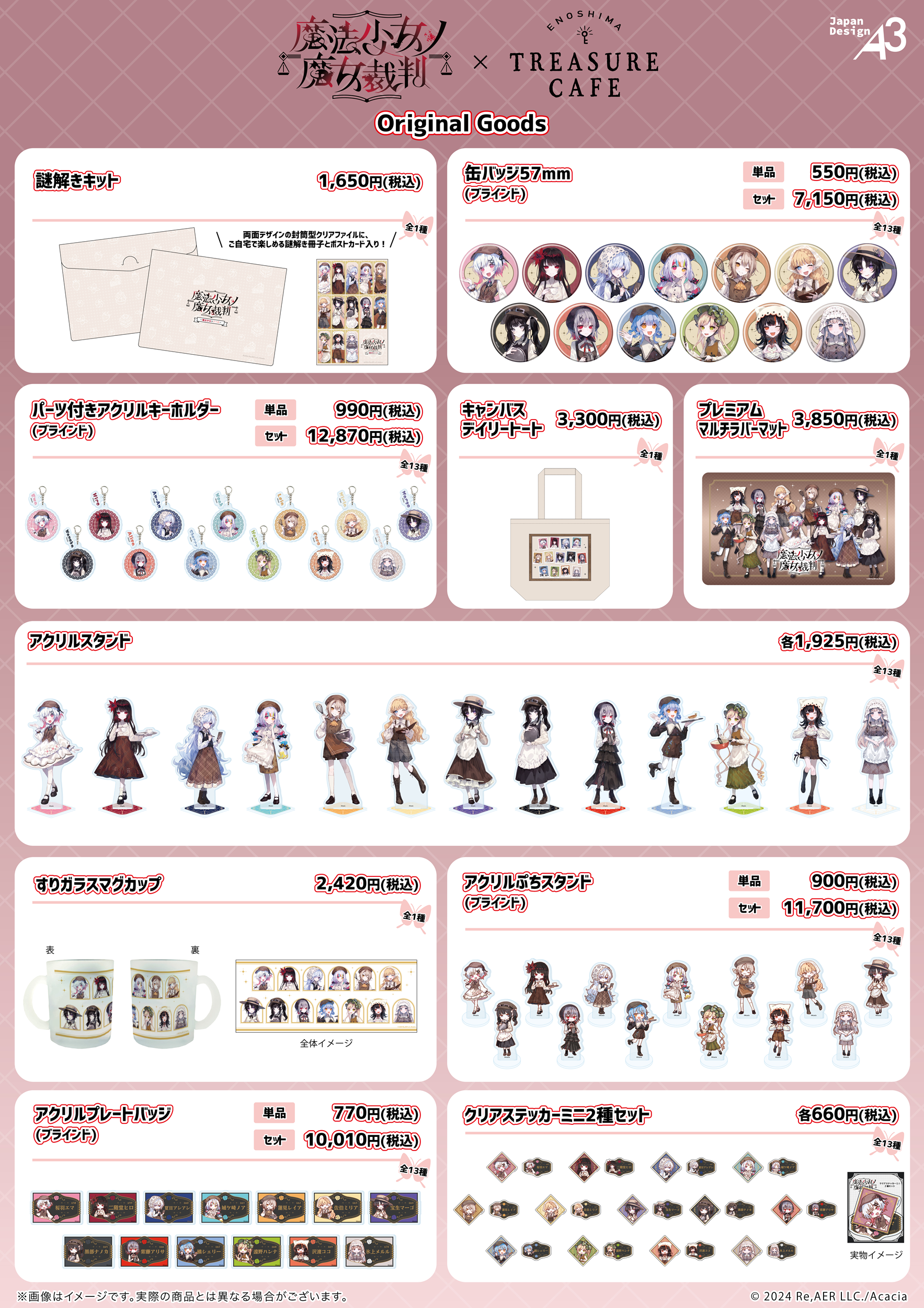 会場にて、『魔法少女ノ魔女裁判×ENOSHIMA TREASURE CAFE』コラボグッズを販売いたします。