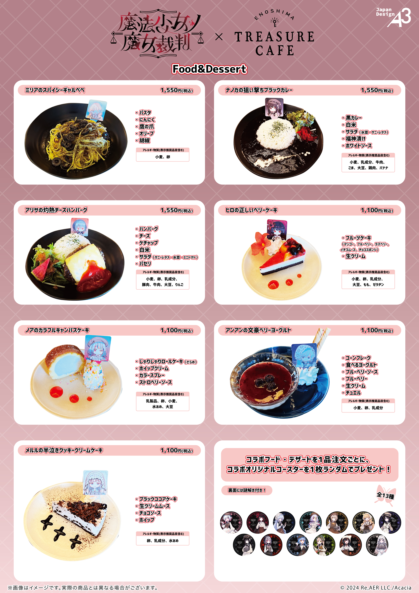 ENOSHIMA TREASURE CAFEでは従来のメニューに加えて、『魔法少女ノ魔女裁判』オリジナルコラボメニューをご提供いたします。